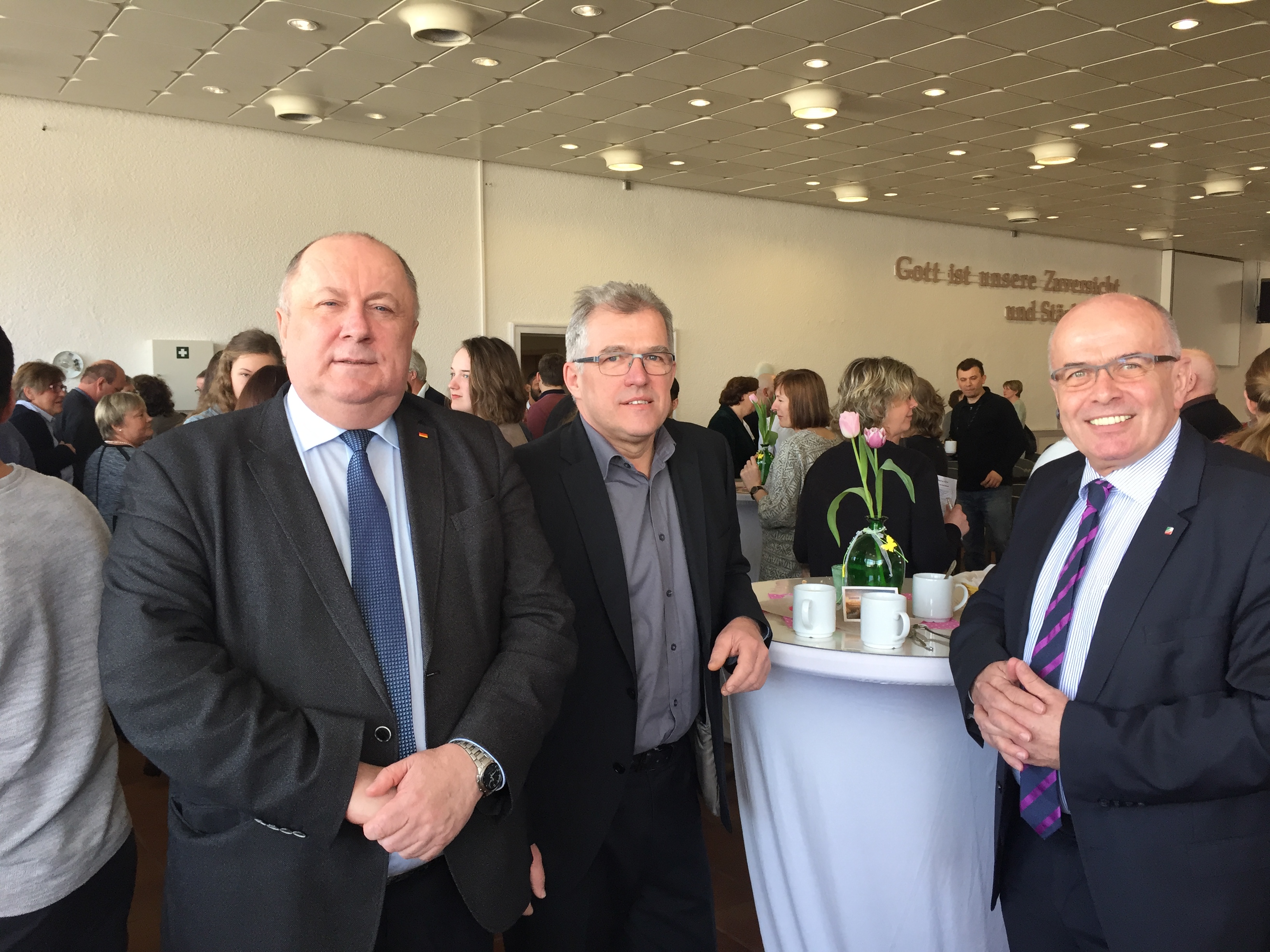 26.03.2017 Nach dem Gottesdienst nehmen sich Heinrich Zertik (MdB), Leiter Jakob Sawatzky und Walter Kern (MdL) (von links nach rechts) Zeit für ein Gespräch. Mehr zum Thema Externer LinkHier geht es zur Internet-Seite der EvangeliumsChristen Gemeinde Blomberg Empfehlen Sie uns!Bei Facebook teilen Bei Twitter (X) teilen Bei Whatsapp teilen Diese Seite drucken Diese Seite einem Freund schicken